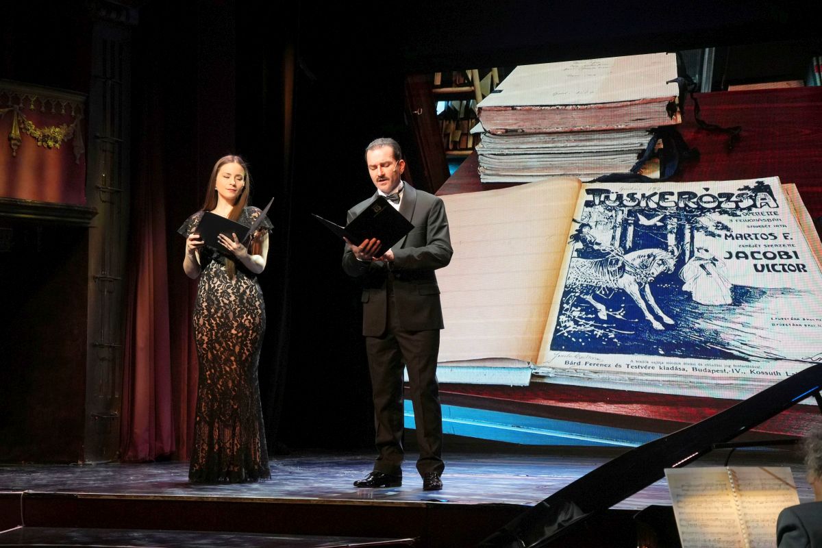 Az eddigiek egy korrekt, szép zenékkel színesített (A cigánybáró két szólóját Kiss Diána és Balczó Péter adta elő), de mindennapos sajtótájékoztató elemei voltak, ami pár mondatban összefoglalható, ahogy mondani szokás, „semmi extra”. Ekkor azonban Erős Kinga elmesélt egy történetet, amire felkapta a fejét mindenki. Említett egy cikket, mely egy Jókai novellán alapuló, ám elveszett Jacobi-operettről ejtett néhány szót, nem leírva sem annak címét, sem pedig a Jókai novelláét. Kíváncsisága hosszas kutatás elé állította. Kiderítette, hogy Jókai Az istenhegyi székely leány című művéből Martos Ferenc librettójával készült 1907-ben a Tüskerózsa című Jacobi operett, melyből egy néhány dalt tartalmazó kiadványt sikerült fellelni, valamint egy gramofonlemezt, melyen Fedák Sári előadásában a Süvegdal hallható. Hatalmas dolog volt ez is, részleteket immár megismerhetett a műből, ám nem hagyta nyugodni az, hogy egy darab kottái és szövegkönyve, egy olyan darabé, ami az ország több helyén is színpadra került, teljesen elveszhet, hisz rendben, az egyik helyen leégett a kottatár, a másik hely már megszűnt, de létezhetetlen, hogy minden egyes helyen, ahol játszották, valami katasztrófa sújtotta volna az anyagot. Kitartásának köszönhetően természetesen rábukkant az operettre: váratlan helyen, épp az Országos Széchenyi Könyvtár egyik sok éve nem bolygatott, porosodó doboza mélyéről került elő a teljes kotta és szövegkönyv. Kézzel írva, nyilván, de mégis egészben, olvashatóan. Sőt, a szövegkönyv olyan kézírással került papírra, amelyet ma is megirigyelhetnénk, minden egyes vonala kidolgozott, gyönyörű írásképpé áll össze. Mindemellett csak egy kézírás, ahogy a kotta is, s ahhoz, hogy a nagyközönség is megismerhesse ezeket a kincseket, még rengeteg munka és hosszú-hosszú idő szükséges. Ahogy az elnök asszony elmondta, a „felfedezés” annyira új, hogy január végén, azaz még csak néhány hete kapták kézhez a digitális másolatokat, megjósolhatatlan, hogy mikorra sikerül a teljes anyagot feldolgozni.